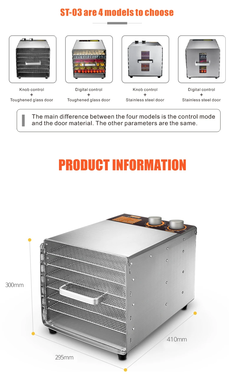 4. Home use capacity of 6 trays,can put 3-4 KG at a time