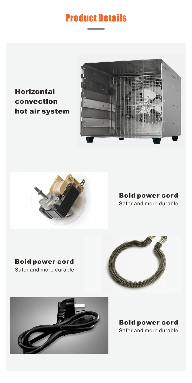 5. Thickened 0.8mm, brushed stainless steel shell. 304 food grade trays.